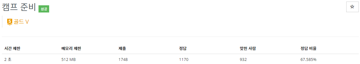 16938번: 캠프 준비