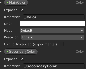 seasonMaterial = FindObjectOfType<...>().GetComponent<SpriteRenderer>().sharedMaterial; seasonMaterial.SetColor("_SecondaryColor", newColor);이런 식으로 코드로 접근할 수 있게 됩니다.