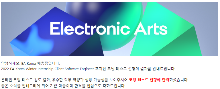 덕분에 서류는 한번에 붙고 코딩테스트 메일을 받을 수 있었습니다. 특이하게 EA의 사이트를 이용하는게 아니라 구글 폼을 사용하는거라 쉽게 지원할 수 있었습니다. EA 영어 사이트 상당히 힘들거든요...