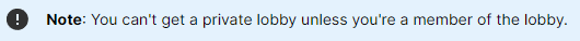 [Lobby]: Forbidden, (16403). Message: lobby is private UnityEngine.Logger:LogError (string,object) Unity.Services.Lobbies.Logger:LogError (object) (at Library/PackageCache/com.unity.services.lobby@1.0.3/Runtime/Utils/Logger.cs:17) Unity.Services.Lobbies.Internal.WrappedLobbyService:ResolveErrorWrapping (Unity.Services.Lobbies.LobbyExceptionReason,System.Exception) (at Library/PackageCache/com.unity.services.lobby@1.0.3/Runtime/SDK/WrappedLobbyService.cs:417) Unity.Services.Lobbies.Internal.WrappedLobbyService/<TryCatchRequest>d__20`2<Unity.Services.Lobbies.Lobby.GetLobbyRequest, Unity.Services.Lobbies.Models.Lobby>:MoveNext () (at Library/PackageCache/com.unity.services.lobby@1.0.3/Runtime/SDK/WrappedLobbyService.cs:359) System.Runtime.CompilerServices.AsyncTaskMethodBuilder`1<Unity.Services.Lobbies.Response`1<Unity.Services.Lobbies.Models.Lobby>>:SetException (System.Exception) Unity.Services.Lobbies.Apis.Lobby.LobbyApiClient/<GetLobbyAsync>d__9:MoveNext () (at Library/PackageCache/com.unity.services.lobby@1.0.3/Runtime/Apis/LobbyApi.cs:316) System.Runtime.CompilerServices.AsyncTaskMethodBuilder`1<Unity.Services.Lobbies.Http.HttpClientResponse>:SetResult (Unity.Services.Lobbies.Http.HttpClientResponse) Unity.Services.Lobbies.Http.HttpClient/<MakeRequestAsync>d__3:MoveNext () (at Library/PackageCache/com.unity.services.lobby@1.0.3/Runtime/Http/HttpClient.cs:47) System.Runtime.CompilerServices.AsyncTaskMethodBuilder`1<Unity.Services.Lobbies.Http.HttpClientResponse>:SetResult (Unity.Services.Lobbies.Http.HttpClientResponse) Unity.Services.Lobbies.Http.HttpClient/<CreateWebRequestAsync>d__7:MoveNext () (at Library/PackageCache/com.unity.services.lobby@1.0.3/Runtime/Http/HttpClient.cs:138) System.Runtime.CompilerServices.AsyncTaskMethodBuilder`1<Unity.Services.Lobbies.Http.HttpClientResponse>:SetResult (Unity.Services.Lobbies.Http.HttpClientResponse) Unity.Services.Lobbies.Http.HttpClient/<>c__DisplayClass7_0/<<CreateWebRequestAsync>b__0>d:MoveNext () (at Library/PackageCache/com.unity.services.lobby@1.0.3/Runtime/Http/HttpClient.cs:135) System.Threading.Tasks.TaskCompletionSource`1<Unity.Services.Lobbies.Http.HttpClientResponse>:SetResult (Unity.Services.Lobbies.Http.HttpClientResponse) Unity.Services.Lobbies.Http.UnityWebRequestHelpers/<>c__DisplayClass0_0:<GetAwaiter>b__0 (UnityEngine.AsyncOperation) (at Library/PackageCache/com.unity.services.lobby@1.0.3/Runtime/Http/UnityWebRequestHelpers.cs:34) UnityEngine.AsyncOperation:InvokeCompletionEvent ()