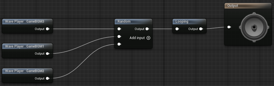 Random 노드 뒤 Looping 노드를 배치하면 랜덤한 곡들을 재생하는 작업을 루프로 할 수 있습니다.