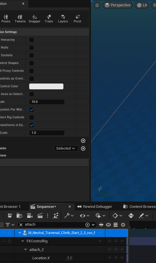 이번에 마주한 제 상황이 딱 그렇습니다. 에픽의 샘플인 Game Anamation Sample Project(GASP) 에서 애니메이션을 가져왔을 때 샘플프로젝트에는 ‘attach’라는 본이 있고 기존 언리얼 스켈레탈에는 그런 본이 없어 파쿠르 시 모션 워핑을 자연스럽게 할 수 없다는 것입니다. 리소스가 attach 본을 기준으로 모션 워핑을 해 파쿠르를 하도록 되어 있어 자연스러운 파쿠르를 위해서라면 attach 본을 추가한 뒤 애니메이션에 해당하는 정보를 넣어야 합니다.