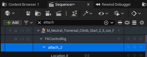 자 그러면 해야 하는 일이 애니메이션에서 해당 본의 위치를 어떻게 지정할지 입니다. 애니메이션 별로 본위 위치, 회전을 그래프로 기록하고 있으니 새로 만든 본도 그 정보를 줘야 합니다. 여기서 저는 역시 Game Animation Sample Project 처럼 attach 본을 ‘파쿠르하는 위치’ 로 지정할 생각입니다.