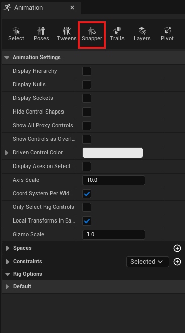 이후 Animatino 창에서(저같은 경우 에디터의 왼쪽에 나왔습니다) Snapper 창을 열면 됩니다.