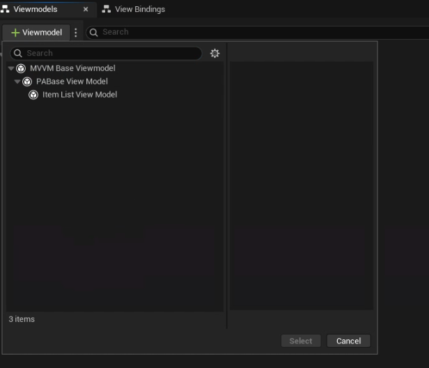 PublicDependencyModuleNames.AddRange(new string[] { //... "ModelViewViewModel", });일단 기본적으로 Module에 이렇게 추가를 해 두어야 합니다. 이후 'UMVVMViewModelBase'가 기본 View Model 클래스이므로 이를 상속받아 사용할 수 있습니다.